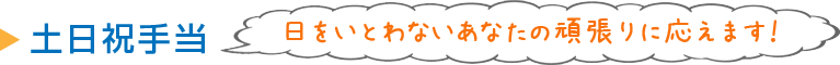 - ☆時給100円UP土日や祝日は皆さん休みが欲しいものです。それでも働いて下さるあなたの頑張りに応えます。