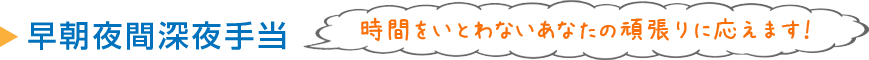 - ☆時給25%~50%UP早朝帯06:00~08:00、夜間帯18:00~22:00、深夜帯22:00~06:00