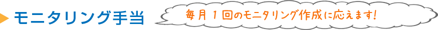 - ☆150円/件モニタリングはお客様ごとにその月のご様子をまとめるレポートのようなものです。毎月ケアマネジャーさんに報告する為のものであり、とても大切な作業です。